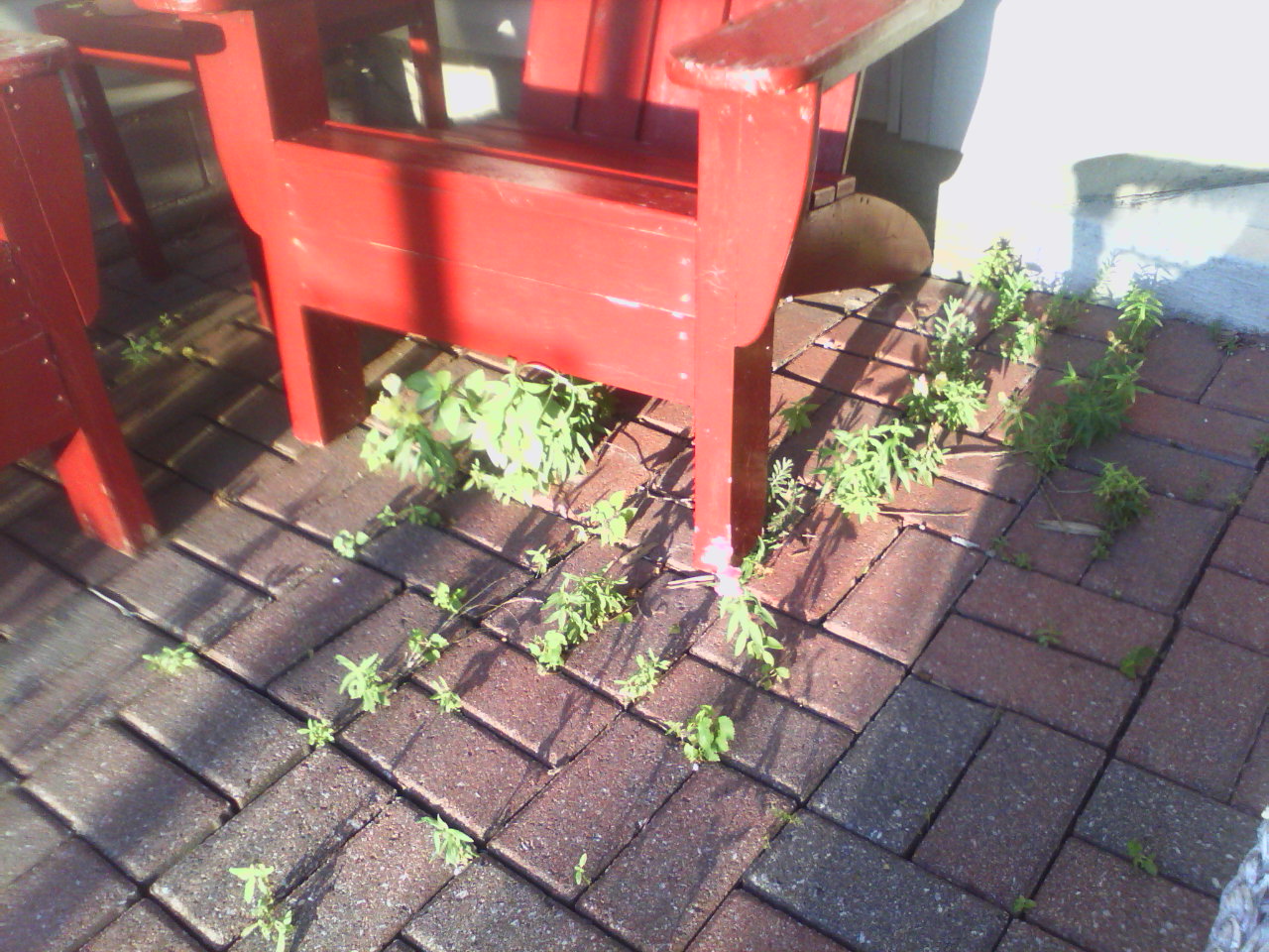 To the contrary, if I see a plant growing that I recognize as one I would normally plant but has popped up in a random place, I will usually just leave it right there. As you can see by this photo of my brick patio, I’m not just making this up. Snapdragons, salvia, lavender and black-eyed Susans raise up from between the cracks, and I sort of delight in their tenacity. Why would I pull something that’s worked so hard to grow in an unlikely place?
