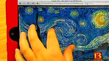 students translate classroom work. As one student simply put it, “It helps you with speaking and learning the language.” Aside from the translation apps, students are engaged by the tactile nature of the programs like the “encyclopedia” that allows them a closer look at works of art. Trust me, this is absolutely a glimpse into the future of education.